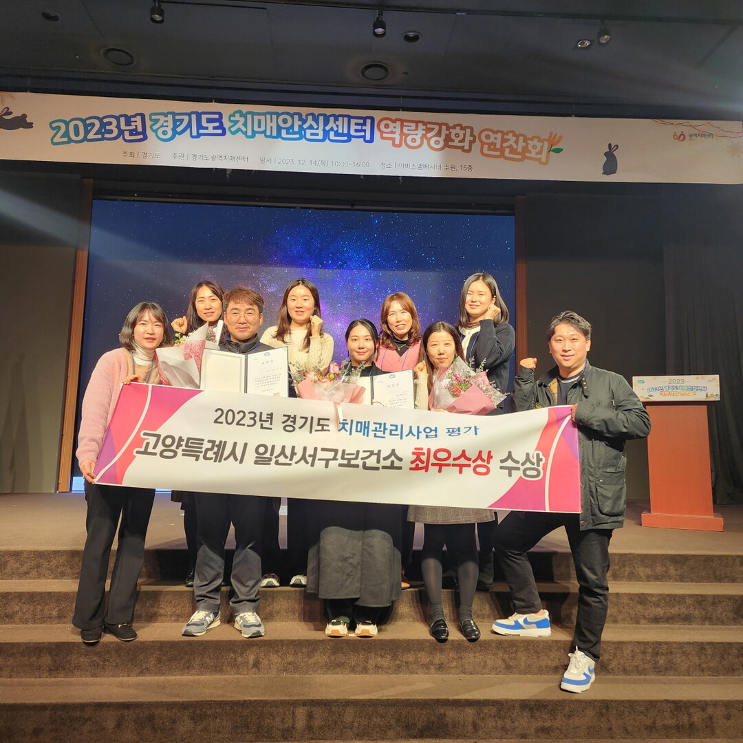 [부자동네타임즈 = 김인수 기자] 일산서구보건소는 지난 14일 ‘2023년 경기도 치매관리사업 그룹별 평가 최우수기관’으로 선정되었다. 시는 이비스앰배서더 수원에서 열린 경기도 치매안심센터 역량강화 연찬회에서 경기도지사 표창을 수상했다.