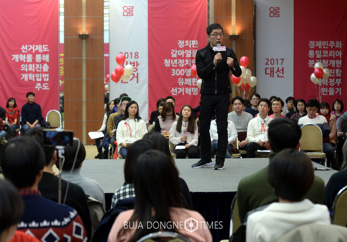 방송인 김제동이 15일 오후 서울 용산구 백범김구기념관에서 열린 '우리미래 창당발기인대회'에 참석해 축사를 하고 있다. 2017.01.15.