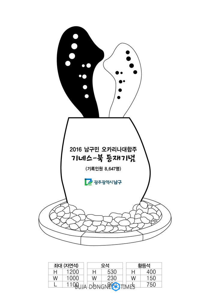 남구는 "주민참여형 문화복지 도시 조성사업의 성공적 수행과 지난해 9월11일 열린 남구민 오카리나 대합주의 기네스북 등재를 기념하기 위해 '남구민 오카리나대합주 기네스북 인증서 전달식 및 기념비 제막식 행사를 오는 19일 개최한다."고 13일 밝혔다.