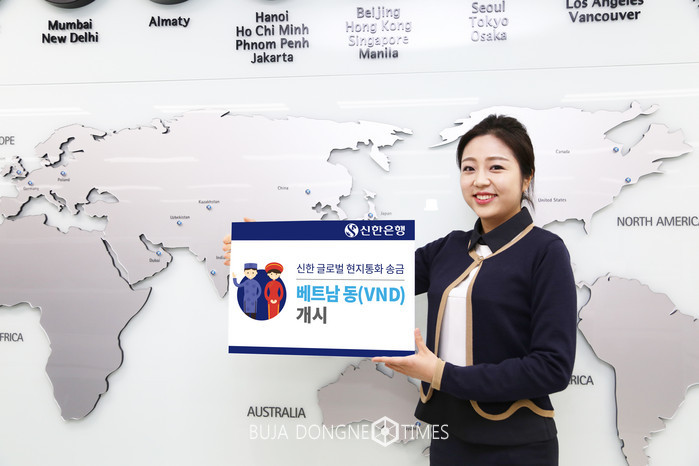 [부자동네타임즈 이현재 기자]신한은행은 국내기업의 베트남해외사업 지원을 위해 실시간 환율 적용이 가능한 ‘신한글로벌 현지통화 송금-베트남 동(VND)’ 서비스를 시행한다고 17일 밝혔다.