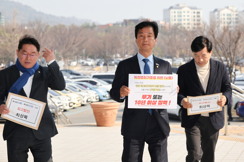 더불어민주당 법률위원회 소속 의원들이 21일 정부과천청사 고위공직자범죄수사처 앞에서 최상목 대통령 권한대행에 대한 고발장을 제출하기 위해 민원실로 향하고 있다. 왼쪽부터 박희승, 박균택, 이성윤 의원. 2025.3.21