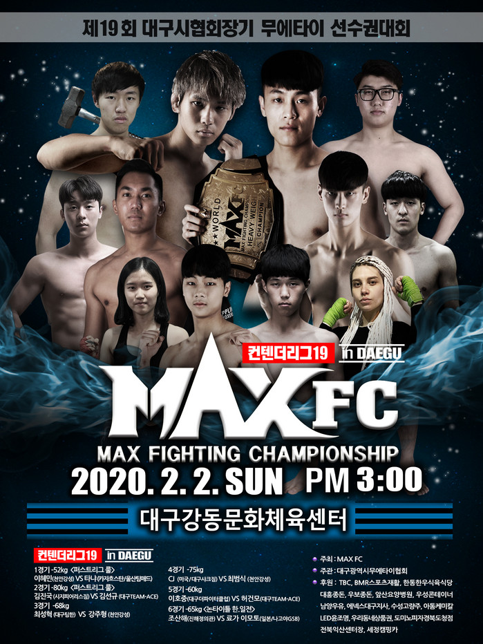 관중들이 재미있어 하고 환호가 끊이지 않는 경기를 하려면 체력이 뒷받침 되어야 한다고 생각한다. 이번 경기 멋지게 치르고 바로 방어전 준비할 것”이라고 자신감 있는 어조로 말했다.한편 'MAXFC 19’는 2월 2일(토) 대구광역시 강동문화센터에서 열린다. MAX FC 유튜브 공식채널을 통해 오후 3시부터 메인 경기가 생중계된다.