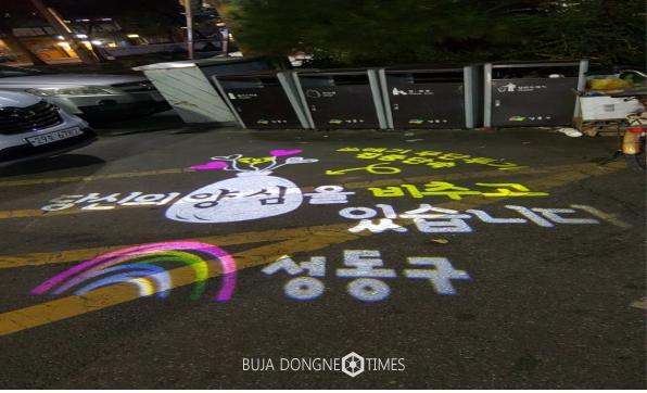 [부자동네타임즈 이병도 기자]성동구(구청장 정원오)에서는 지난 11월 성수1가제2동 주민의 의견을 적극 반영하여 지역 내 유동인구가 많고 무단투기가 많이 일어나는 골목길 7개소에 로고젝터를 설치했다.