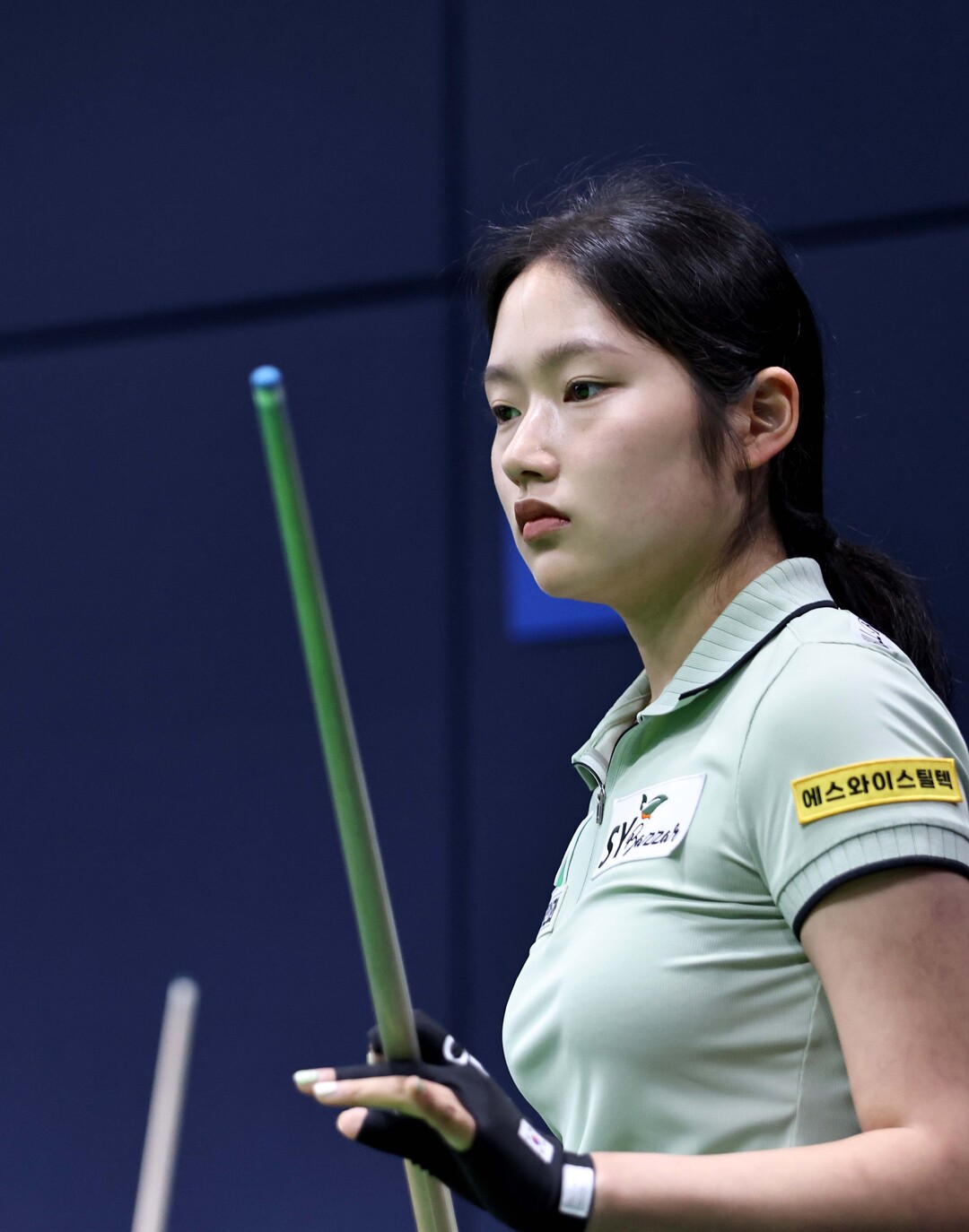 ‘여자 아마추어 1위’ 출신 한지은은 25점제(50분 시간제한)로 치러진 1차 예선서 ‘18세’ 김사랑을 23이닝만에 25:6으로 꺾고 가볍게 통과했다. 선공을 잡은 한지은은 7이닝까지 7:5 근소한 리드를 유지하다 김사랑이 연속 공타로 돌아선 틈을 타 차곡차곡 점수를 쌓았다. 13:5로 앞선 18이닝서는 하이런 5점을 쓸어담으며 18:5 승기를 잡았고, 23이닝만에 25점을 채워 25:6으로 경기를 승리로 마무리했다. 한지은은 19일 오전11시 PQ라운드서 고은경을 상대로 64강 진출에 도전한다.