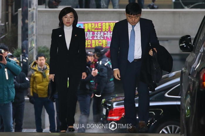 문화·예술계 블랙리스트의 작성과 관리를 주도한 혐의를 받고 있는 조윤선 문화체육관광부 장관이 17일 오전 서울 강남구 대치동 특별검사 사무실에 피의자 신분으로 출석하고 있다. 2017. 01. 17.