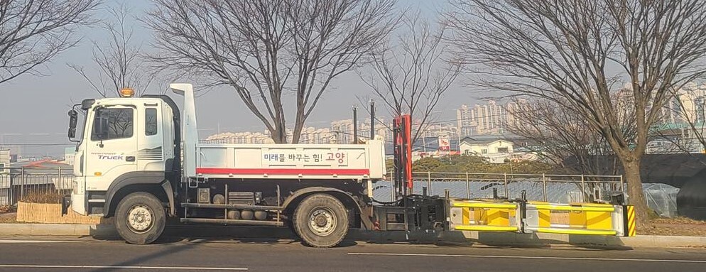 [부자동네타임즈 = 김인수 기자] 지난 21일부터 자유로 청소 근로자의 안전 보장을 위해 청소 현장에 투입 중인 작업보호차량에 트럭탈부착형 충격흡수시설(TMA)을 도입했다.