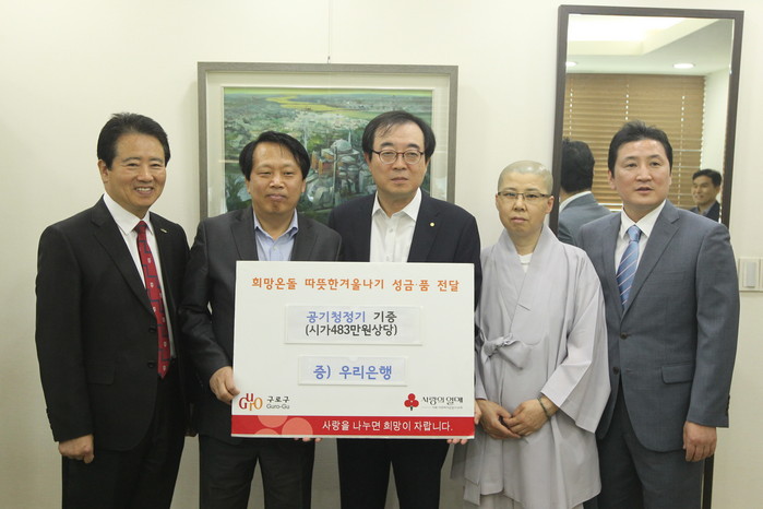 4일에는 우리은행 구로·금천영업본부(본부장 임익봉)가 구로종합사회복지관, 화원종합사회복지관, 구로노인복지관 등 관내 3개 복지관에 160만원 상당의 공기청정기를 각각 기증했다.