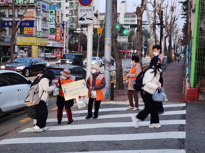 이날 대화노인복지관 선배시민대학 참여자 11명은 수험장(대진고)을 방문해 수험생에게 핫팩과 간식꾸러미 100여 개를 전달했다.