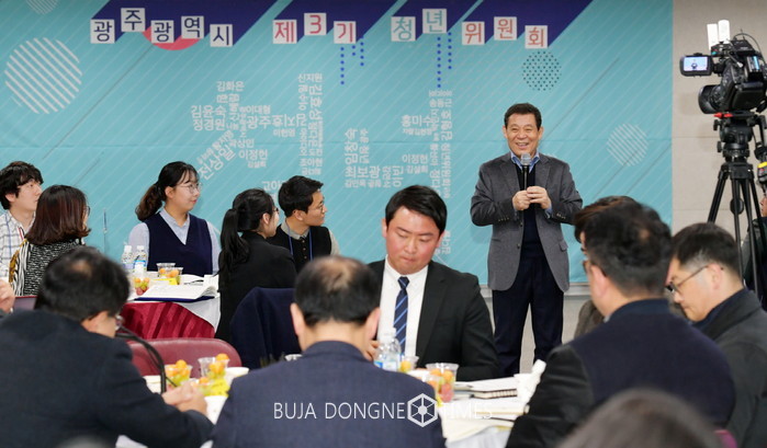 윤장현 시장은 "민선6기 시장으로 취임해 보니 광주에서 주인공인 청년들이 보이지 않았고 청년들의 말이 들리지 않아 무척 안타까웠다."며 "지역의 미래이고 국가의 근간인청년들을 위해 전담 부서를 신설하고 밖에는 아지트인 청년센터를 , 청년위원회를 만들게 됐다."고 소개했다.