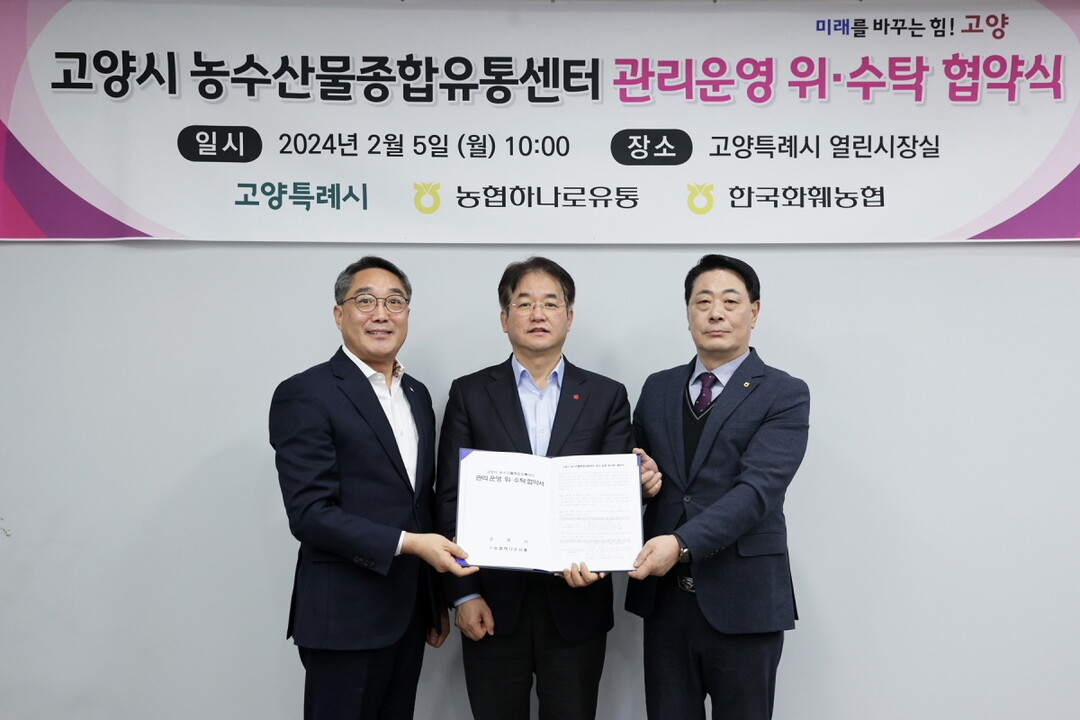 [부자동네타임즈 = 김인수 기자] 고양특례시는 지난 5일 ㈜농협하나로유통·한국화훼농협과 고양시농수산물종합유통센터 관리운영 위·수탁 협약을 맺었다고 밝혔다.