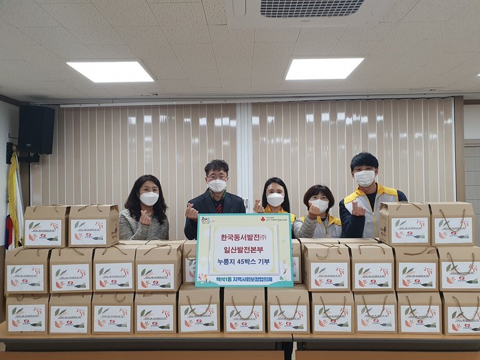 일산동구 백석동에 소재한 한국동서발전 일산발전본부는 백석1동과 협약을 맺어 어려운 이웃에게 도시락을 전달하는‘사랑 가득 도시락 나눔’사업을 지원해 왔고, 관내 저소득 학생 장학금 지원, 여름철 삼계탕 나눔, 김장나눔, 환경정화활동 등 지역사회 공헌 활동에 적극적으로 참여해왔다.