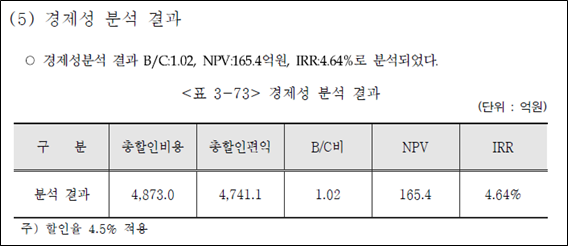 <그림 4> 서울-양평 고속도로 경제성 분석 결과.