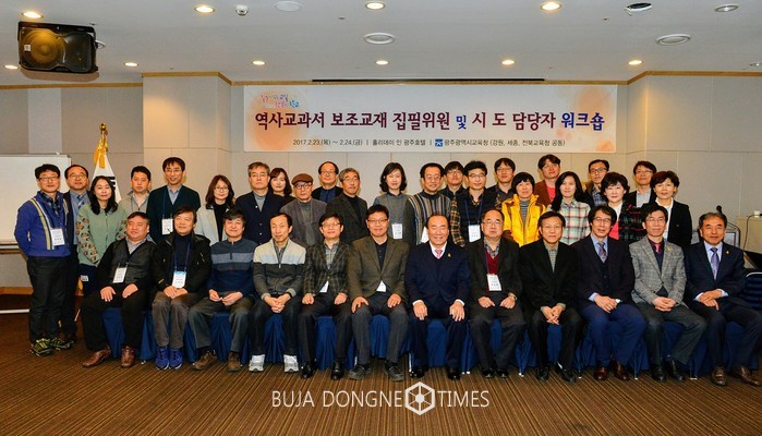 | △광주교육청이 역사교과서 보조교재 개발을 위한 4개 시·도 집필위원과 업무당당자 워크숍을 개최했다. 참석자들은 역사교과서 보조교재 개발과 관련한 협의와 열띤 토론을 진행했다 |