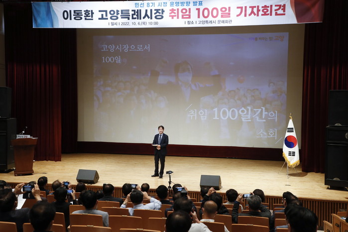 [부자동네타임즈 김인수기자] 고양특례시는 지난 6일 이동환 시장 취임 100일을 맞아 기자간담회를 마련하고 시정핵심사업 진행상황을 설명했다.