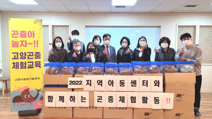 [부자동네타임즈 김인수기자] 고양특례시(시장 이동환) 농업기술센터가 고양곤충산업연구회와 함께 곤충 사육키트 100세트를 지역아동센터 5개소에 전달했다. 고양시는 사육 키트 전달에 그치지 않고 사육 방법을 안내하는 교육도 실시할 계획이라고 28일 전했다.