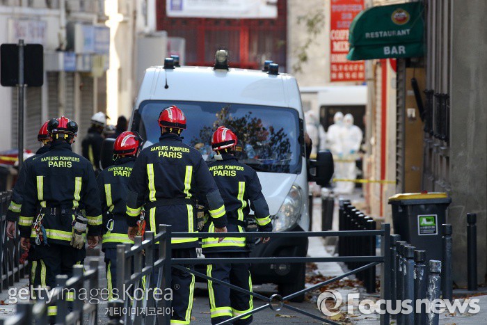 | △(생드니/프랑스=게티/포커스뉴스) 프랑스 파리 테러를 주도한 용의자로 지목받고 있는 압델 하미드 아바우드(27)가 사망했다는 소식이 전해졌다. 18일(현지시간) 파리 소방관들이 용의자 검거 작전 이후 분주하게 사건 현장을 수습하고 있다. ⓒ게티이미지/멀티비츠 photo@focus.kr |
