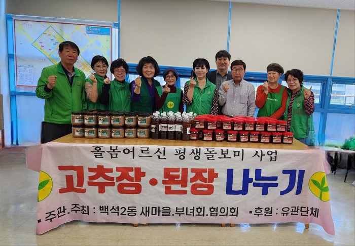 백석2동 새마을부녀회는 매년 이웃돕기 행사로 고추장 담그기 행사를 계속 이어가고 있으며, 올해도 주변의 소외된 이웃 60가구에게 전달할 고추장·된장·간장을 정성을 다해 담그며 이웃사랑을 실천했다.