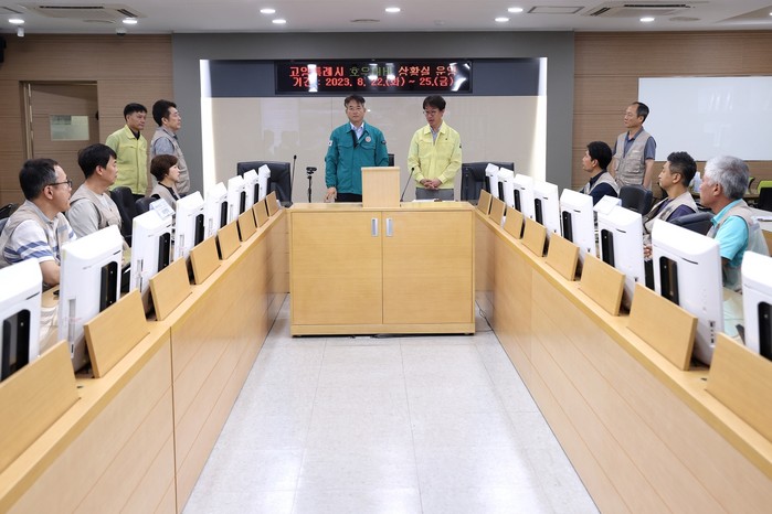 이동환 고양특례시장은 재난상황실을 방문해 강수량 및 비상근무 상황을 점검하고 철저한 재난대응과 호우피해 예방을 강조했다.