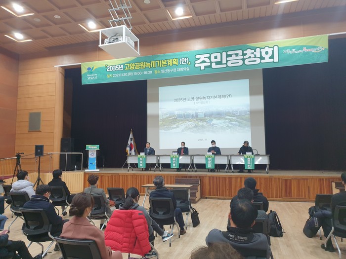 [부자동네타임즈 김인수기자] 고양시가 일산동구청 대회의실에서 「2035년 고양시 공원녹지 기본계획(안)」에 대한 주민공청회를 개최했다고 2일 밝혔다.