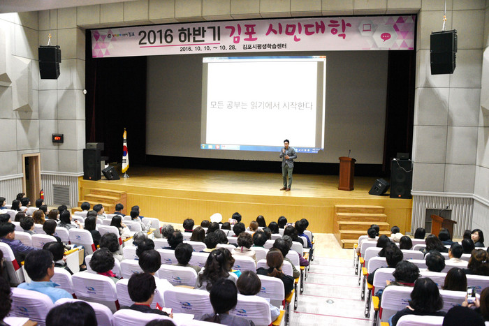 [김포=부자동네타임즈 이영진 기자]김포시 하반기 김포시민대학 특강이 지난 10일 평생학습센터 대강당에서 350여명이 참석한 가운데 문을 열었다.
