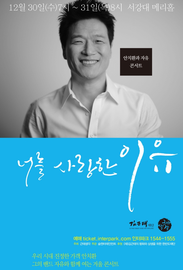 이번 콘서트는 이 시대를 살아가는 모두에게 살아있음에, 곁에 있음에 ‘사랑한다’는 말을 전하고 싶은 안치환의 마음을 그대로 담아 ‘너를 사랑한 이유’로 콘서트 타이틀을 정하고 2015년 마지막 날을 관객들과 함께하며 노래로 그 마음을 전할 예정이다.
