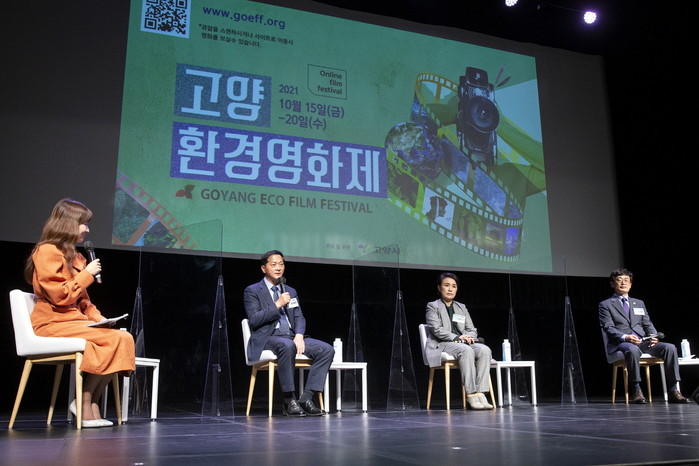 [부자동네타임즈 김인수기자] 지난 15일 고양어울림누리 별모래극장에서 ‘지속가능한 도시를 위한 바람직한 방향’을 주제로 제1회 고양환경영화제 개막식 및 토크콘서트가 열렸다. 제1회 고양환경영화제는 10월 15일부터 20일까지 환경다큐멘터리영화 6편을 고양환경영화제 누리집에서 온라인으로 상영한다.