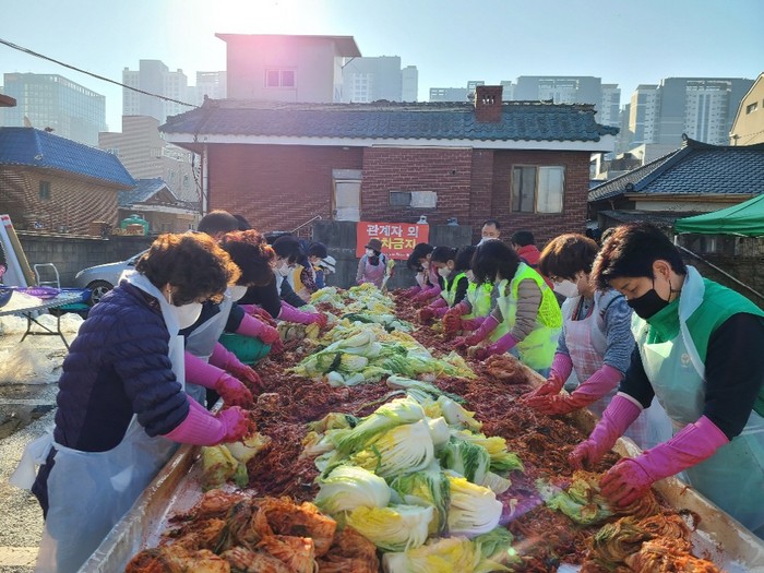 [부자동네타임즈 김인수기자] 고양시 삼송동 새마을부녀회(회장 유인희)는 지난 11월 17일(수) 삼송동 유관단체 회원들과 함께 배추 450포기의 김장을 담아, 지역 내 고연령 저소득층 100여 가구와 경로당 10개소에 전달했다고 밝혔다.