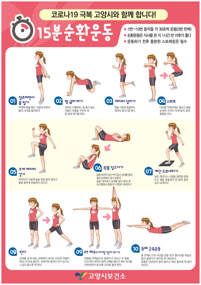 [부자동네타임즈 김인수기자] 고양시(시장 이재준)는 코로나19 확산으로 외부 신체활동이 어려워진 시민들의 신체적·정신적 건강증진을 위해 자체 홈트레이닝 포스터를 제작해 보급한다고 3일 밝혔다.