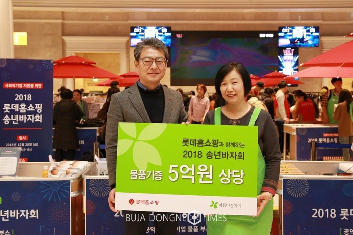 [부자동네타임즈 김현정 기자]롯데홈쇼핑(대표 이완신)은 지난 28일(금), 연말을 맞아 서울 잠실 롯데월드타워 특설매장을 비롯한 ‘아름다운가게(이사장 홍명희)’ 서울 지역 28개 매장에서 ‘롯데홈쇼핑과 함께하는 2018 송년아름다운하루나눔바자회’를진행했다.