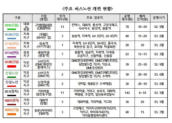 [사진설명] 고양시 주요 버스노선 개편도.