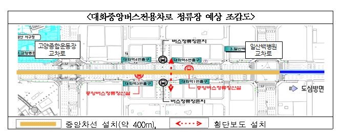 대화역에는 중앙 버스전용차로 정류장이 들어선다. 이용객이 상하행선을 합쳐 월 평균 56만명이 넘는 대화역 버스정류소의 혼잡도 개선을 위해 7월 중으로 중앙 버스전용차로 정류장을 착공해 연내 완공할 계획이다.