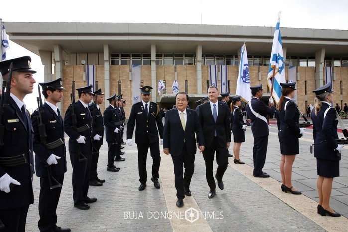 [부자동네타임즈 조영재 기자]이스라엘을 공식방문 중인 문희상 국회의장은 현지시간 12월 24일(월) 이스라엘 국회에서 마련한 공식 환영식에 참석한 뒤, 율리 에델스타인(Yuli-Yoel Edelstein) 국회의장을 만나 의회 간 교류협력 증진 방안과 현재 진행 중인 한-이스라엘 FTA 협상에 대한 의회차원의 지원방안 등을 논의했다.