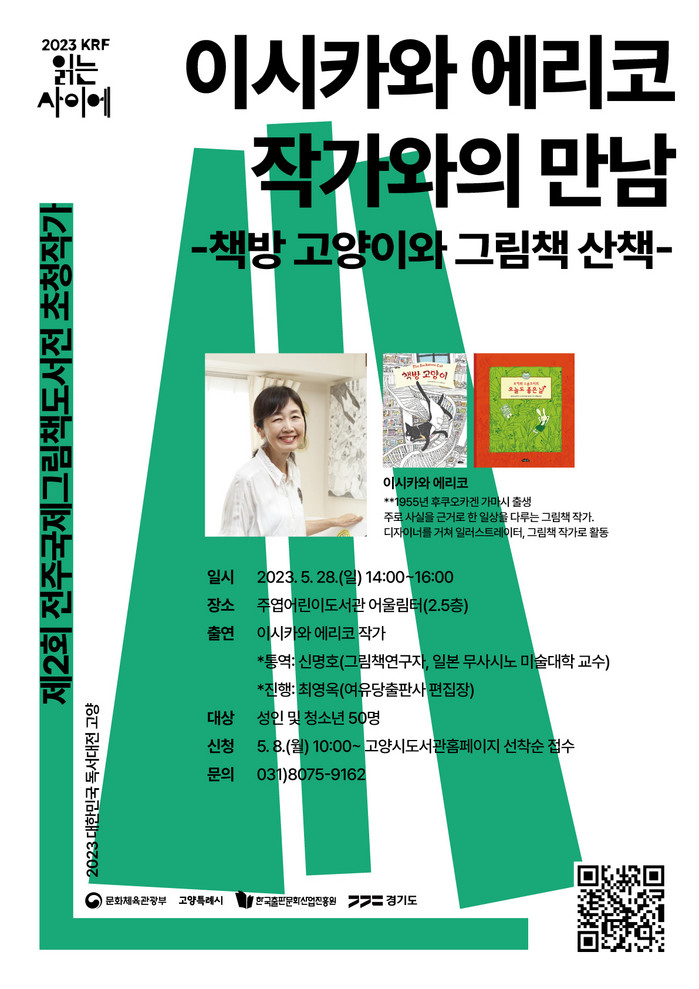 고양시는 올해 ‘제2회 전주그림책도서전’에 초청된 이시카와 에리코 작가의 방문 시기에 맞춰 세계그림책 특성화도서관인 주엽어린이도서관 독자들과의 만남을 추진한다.