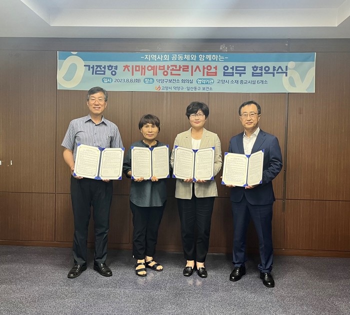 [부자동네타임즈 김인수기자] 일산동구보건소 치매안심센터가 높은빛예심교회, 일산예일교회, 중산성당과 함께하는 거점형 치매예방관리 사업 추진을 위해 8일 덕양구보건소 2층 회의실에서 업무 협약을 체결했다.