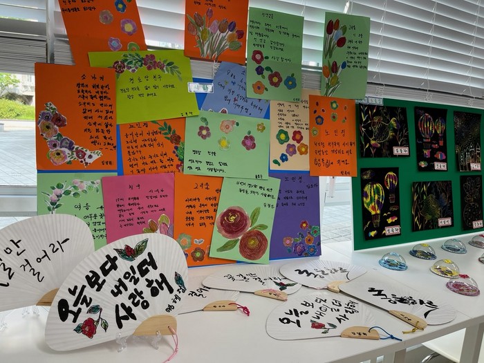 이번 전시회는 그동안 어르신들이 만든 작품을 마을 주민들과 함께 감상할 수 있도록 단지 내 주민들의 왕래가 잦은 도서관에 7월 마지막 주 3일간 전시하는 것으로 실시되었다.