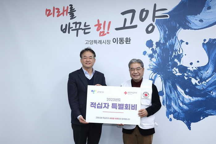 [부자동네타임즈 김인수기자] 고양특례시(시장 이동환)가 대한적십자사 경기지사에 2023년 대한적십자사 특별회비 200만원을 전달했다. 고양시는 시청 열린시장실에서 특별회비 전달식을 열었다고 30일 전했다.