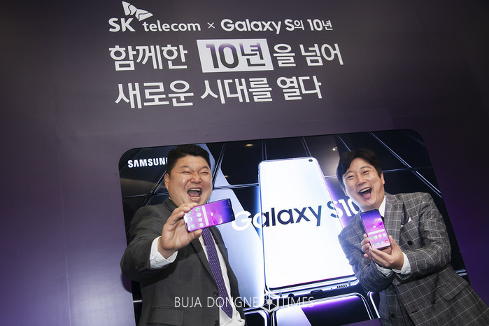 [부자동네타임즈 김현정 기자]SK텔레콤(대표이사 사장 박정호, )이 4일 오전 본사 T타워에서 SK텔레콤-갤럭시S 10주년 기념 갤럭시S10 개통행사를 개최했다. 행사에는 지난 10년간 호흡을 맞춘 방송인 강호동, 이수근씨가 참석해 SK텔레콤과 갤럭시S의 10주년을 축하했다. SK텔레콤은 통신 3사 중 유일하게 갤럭시 출시 10주년을 맞이 했다.