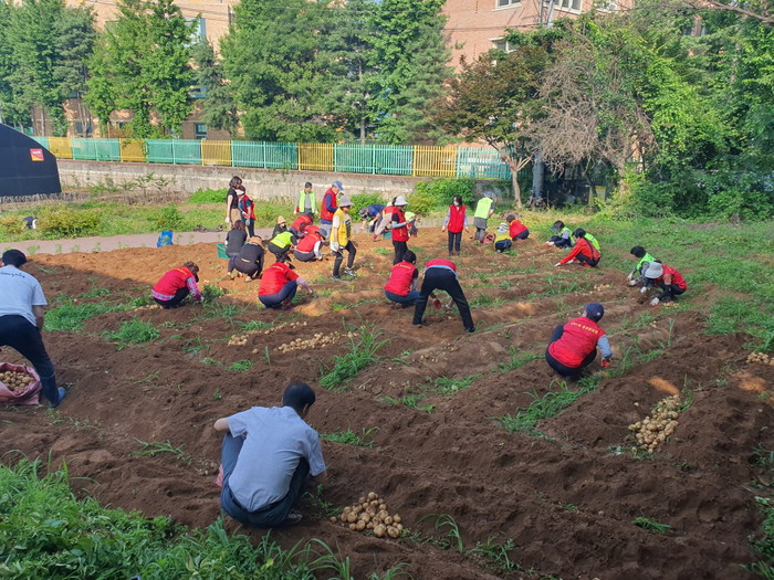 올해도 3월 말, 성사1동 직능단체 회원들이 모여 감자 씨를 파종하였고 자투리 시간을 내서 김매기 등 지속적인 관리를 하였기에 무사히 감자를 수확할 수 있었다.