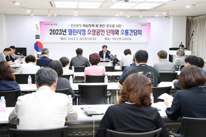 [부자동네타임즈 김인수기자] 지난 18일 덕양구청 소회의실에서 고양시 소상공인 단체와 함께 ‘2023년 열린 시정 소통간담회’를 개최했다.