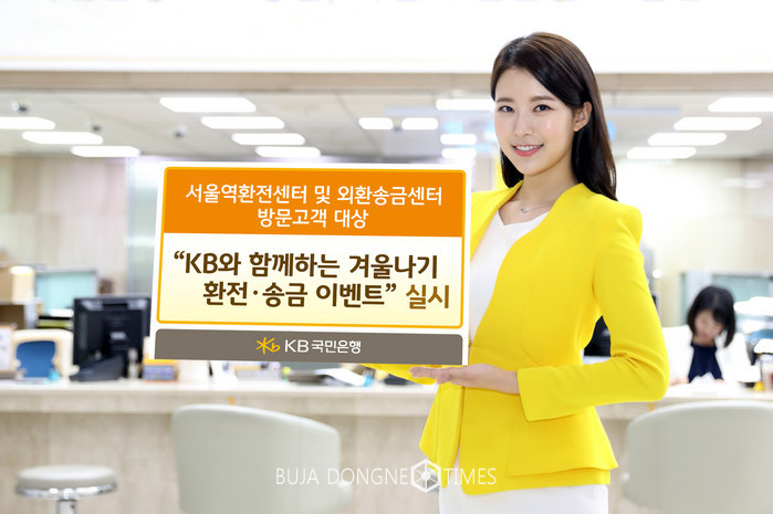 [부자동네타임즈 이현재 기자]KB국민은행은 KB서울역환전센터와 외환센터를 이용하는 고객을 대상으로「KB와 함께하는 겨울나기 환전·송금 이벤트」를 실시한다고 밝혔다.