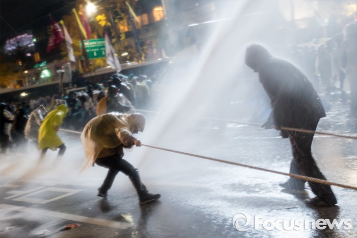 | △ 지난 14일 오후 서울 종로구 세종대로에서 민주노총 등 53개 노동·농민·시민사회단체로 이뤄진 '민중총궐기 대회'가 열렸다. 청와대로 행진하기 위해 경찰 차벽을 뚫으려는 시위대를 향해 경찰이 물대포를 쏘고 있다. <사진제공=포커스뉴스> |