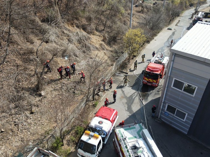 이날 훈련에는 고양시 공무원과 산불전문진화대원 및 고양소방서 소방대원들이 진화차 살수, 진화선 구축 등 실제 상황에서의 협력체계를 다지기 위한 무각본 대응훈련으로 추진되었다.