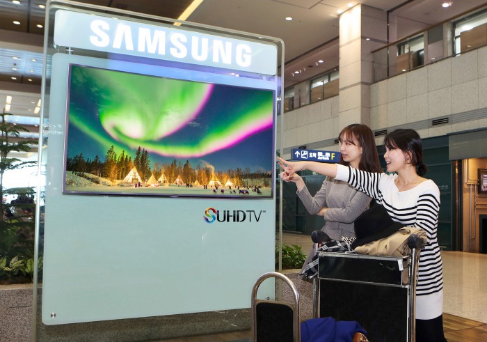 삼성전자는 이번달 초 인천국제공항 출‧입국장에 설치된 2010년형 LED TV 81대를 55인치 SUHD TV로 교체했다.