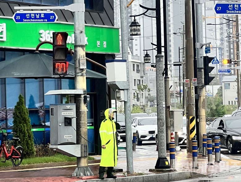 한편 현장 수신호 통제 및 교통질서 확립에 앞장선 류병남 경감을 비롯한 제6팀 소속 경찰관 5명은 내부 표창 대상자로 추천됐다.