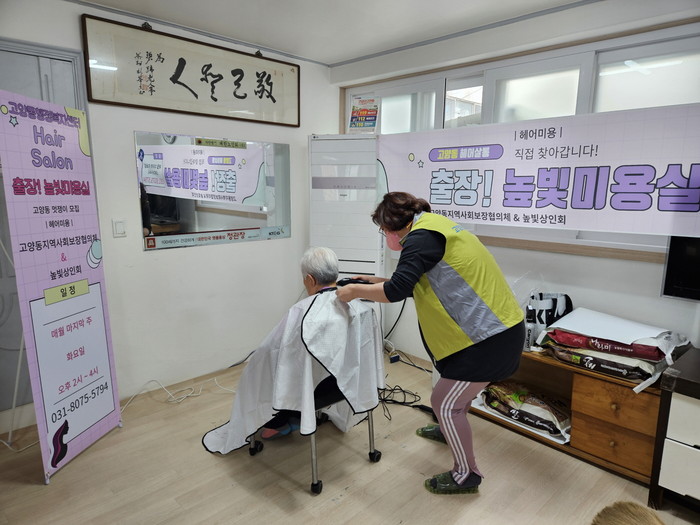 [부자동네타임즈 김인수기자] 고양특례시 고양동 행정복지센터는 고양동 상인모임 ‘높빛 상인회’와함께 어르신들을 위한 ‘출장! 미용실’을 진행했다고 31일 전했다.