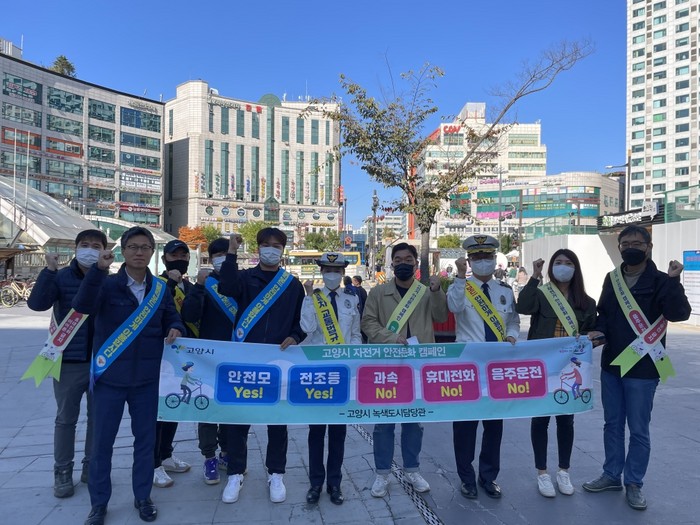 고양시는 합동 안전캠페인을 통해 시민들에게 자전거 이용 시 ▲안전모 착용하기 ▲야간운행 시 전조등 켜기 ▲과속하지 않기 ▲운행 중 휴대전화 사용하지 않기 ▲음주운전 하지 않기 등 5가지 준수사항을 홍보했다.