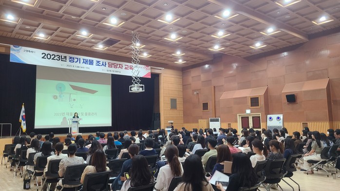 [부자동네타임즈 김인수기자] 고양특례시(시장 이동환)는 지난 8월 1일 오후 일산동구청 대회의실에서 본청, 사업소, 3개 구, 각 동의 재물조사 담당자를 대상으로 ‘2023년 정기 재물조사 담당자 교육’을 실시했다.