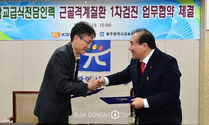 [광주=부자동네타임즈 손권일 기자]광주시교육청(교육감 장휘국) '학교급식전담인력 근골격계질환자 관리를 위한 업무협약'을 지난 12월 29일 조선대학교병원과 체결한데 이어 1월 13일 KS병원(병원장 이영철)과 체결했다.