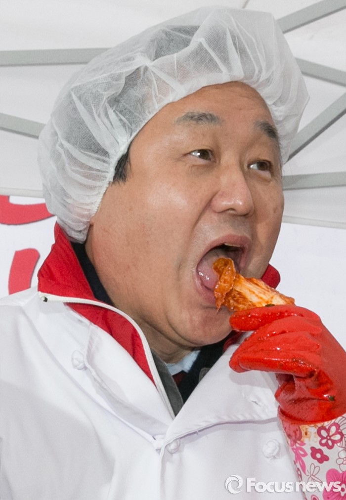 | △ 김무성 새누리당 대표가 지난 10일 오전 서울 여의도 국회 후생관 앞에서 열린 김장김치 나누기 행사에 참석해 직접 담근 김치를 시식하고 있다. <사진제공=포커스뉴스> |
