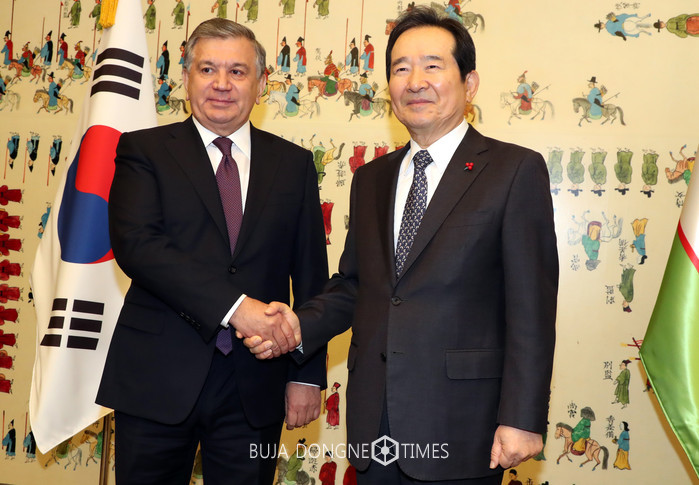 [부자동네타임즈 조영재 기자]정세균 국회의장은 24일 국빈 방한 중인 샤브카트 미르지요예프 우즈베키스탄 대통령과 만나 양국간 우호를 다짐했다.